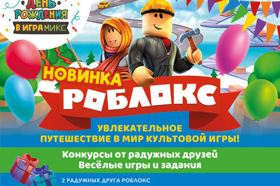 Увлекательное путешествие в мир культовой компьютерной игры! Гостей и именинников ждут радужные друзья, конкурсы, весёлые игры и задания. Программа проходит в банкетной комнате Роблокс!